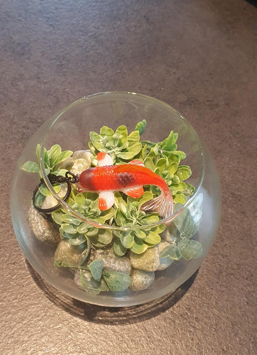 Porte-clé carpe koï unique Blanche, Orange et Noire